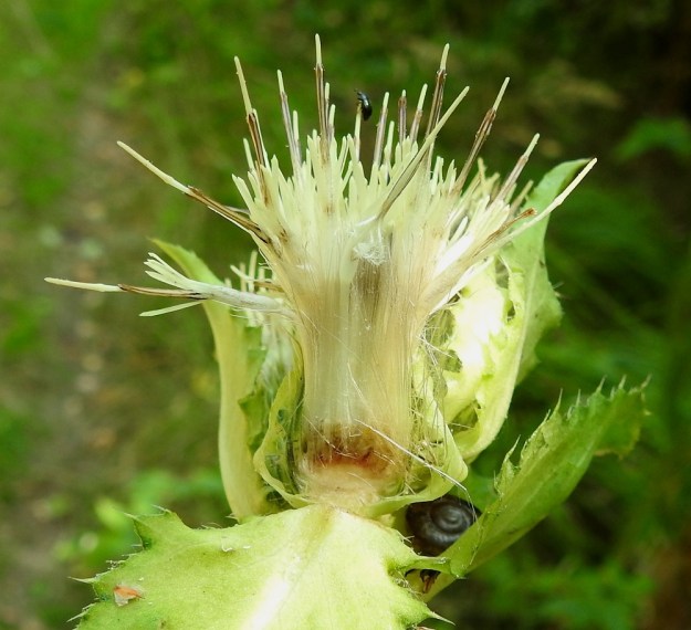 Monikukkaisen mykerön uloimman kerroksen muodostavat pienet, kapeat ylälehdet eli kehtosuomut, jotka ympäröivät monikerroksisena, tiiviin puolipallomaisena suojuksena eli kehtona varsinaista kukintoa. Koko kehtoa ympäröi runsaampi tai niukempi seittikarvoitus tai koko kehto on seittikarvaton. Kehtosuomut ovat muuten kaljut, vihreät, lähinnä suikeat ja pitkäsuippuisen teräväkärkiset. Ulompien suomukerrosten yläosa on ulospäin kaartunut ja kärki on kovettunut hennohkoksi sekä yleensä enintään noin 2 mm pitkäksi piikiksi. Sisimmät suomukerrokset ovat kärkiosastaan vaaleat, taipuisat ja teräväkärkiset mutta piikittömät. Ne ovat nuppuvaiheessa taipuneet sisäänpäin kukinnon suojaksi. Kehtosuomut ovat tavallisesti noin 7-25 mm pitkät ja leveimmältä kohtaa noin 2-2,5 mm leveät. Lyhimmät suomut ovat uloimpana kehdon tyvellä ja pisimmät sisimpänä kukintoa vasten. Kehto on tavallisesti noin 20-25 mm korkea ja noin 15-25 mm leveä. Koko mykerö on täydessä kukassaan yleensä noin 30-45 mm korkea ja yläosastaan noin 30-35 mm leveä.