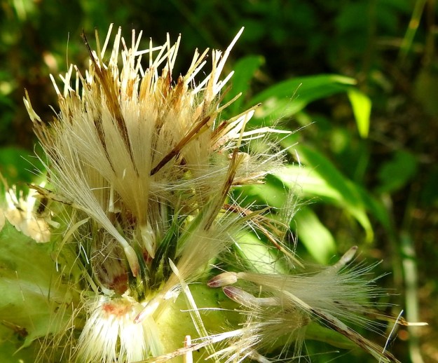 Mykerössä on yli 100 kukkaa. Neuvottomat, kookkaammat laitakukat puuttuvat. Mykerön kaikki kukat ovat kaksineuvoisia, torvimaisia kehräkukkia. Niiden tyvellä on lähes koko mitaltaan pitkittäisesti liuskainen ja noin 5-7 mm pitkä tukisuomu. Verhiö on noin 15-20 mm pitkä ja muuntunut sulkahaiveniksi. Pelkkä teriö on yleensä noin 18-25 mm pitkä ja nousee korkealle kehdon yläpuolelle. Sen tyviosa on rihmamaisen tasasoukka, noin 7-10 mm pitkä ja jää kehdon sisään. Teriön kärkiosa on torvimainen, kapean 5-liuskainen ja vaaleankeltainen. Pituutta kärkiosalla on noin 11-15 mm. Heteitä on 5. Niiden sinipunaiset tai kellanruskehtavat ja myöhemmin ruskeahkot sekä kapean tasasoukat ponnet ovat lieriömäisen yhdiskasvuisesti emin vartalon ympärillä. Emiö on 2-lehtinen, 1-vartaloinen ja luotiltaan 2-liuskainen. Vartalo luotteineen nousee selvästi teriönliuskoja pitemmäksi ja se on kärkiosastaan yleensä kellanvalkoinen. Hedelmä on pitkulainen, vähän litistynyt, sileä ja kellanvaalea tai ruskehtava pohjuspähkylä, joka on tavallisesti noin 4-5,5 mm pitkä ja noin 1-1,5 mm leveä. Sen kärjessä on rengaspaksunnos ja leviämistä helpottava, vaalea sekä sulkahaivenista muodostunut pappus eli kehräkukan verhiön muutunnainen. Normaali kukinta-aika on heinä-syyskuu.